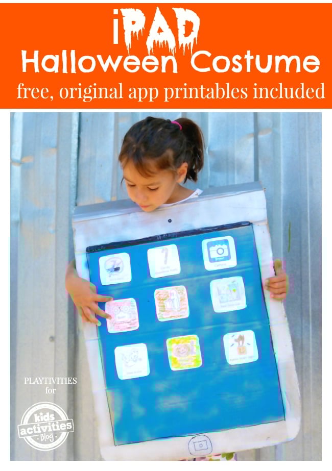 I love this iPad Halloween costume because it’s so easy to get kids involved into the whole costume making process. It’s basically a craft and a costume. Coloring those apps are also a super fun activity for kids.